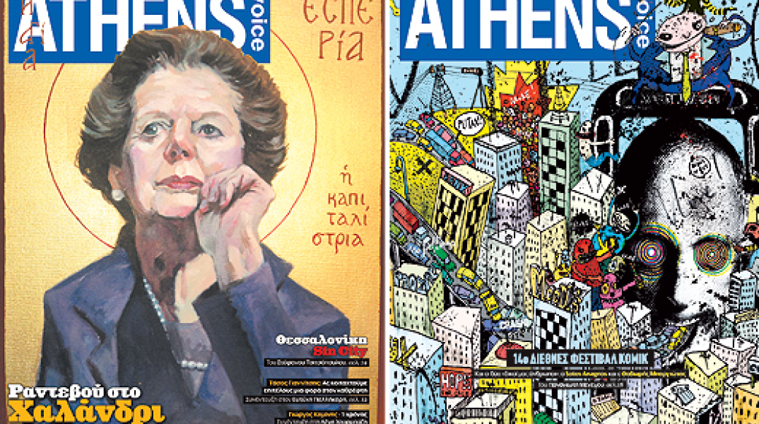 383 – 15/3/2012 «Παρασκευή στην Αθήνα: Περπατάς στο κέντρο της Αθήνας και δεν είναι όπως το θυμόσουν. Ξαφνικά είναι πιο φωτισμένο από πριν. Απο μακριά ακούγεται η Φιλαρμονική. Στρίβεις στο Μοναστηράκι και κάτι τύποι χορεύουν παθιασμένα tango. Περνάς απο μια βιτρίνα, η τσάντα που έχεις μπανίσει είναι ξαφνικά φτηνότερη κατά 50%. “Παρασκευή στην Αθήνα” ονομάζεται το σχέδιο που εγκαινίασε ο Εμπορικός Σύλλογος Αθηνών (με τη σύμπραξη του Δήμου Αθηναίων) και περιλαμβάνει εκπτώσεις και happenings κάθε Παρασκευή. Η Ελίζα Συναδινού είχε πάρει τους δρόμους.