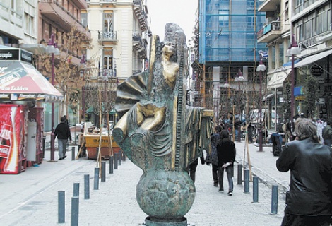 Επί δημαρχίας Αβραμόπουλου αρχίζει μια περίοδος εκλεκτικισμού (συνδυασμός Λουί Κενζ, νεοκλασικισμού και μεγαλοπρέπειας). Ο εκλεκτικισμός είναι δύσκολη υπόθεση. Μια απροσεξία, ένα φο πα και εύκολα εκτρέπεται προς το κιτς. Μέσα σε ένα βράδυ ξεφύτρωσαν στις εισόδους της πόλης μαρμάρινες πλάκες με την επιγραφή «ΑΘΗΝΑΙ» χαραγμένη με χρυσά αρχαιοπρεπή γράμματα. Ο μεθυσμένος οδηγός που γύριζε ξημερώματα από τα μπουζούκια μπορούσε πλέον να ξέρει πού βρίσκεται. Όπως και ο οικογενειάρχης που επέστρεφε από το εξοχικό του. Το ίδιο και ο ταρίφας που είχε ζαλιστεί από τα ατελείωτα μπες βγες στο κέντρο της πόλης. Τελευταία εικαστική παρέμβαση υπήρξε η προτομή της Βουγιουκλάκη στην πλατεία Μαβίλη. Ο δήμαρχος εμφανίστηκε από τους πρώτους στα αποκαλυπτήρια (όπου γάμος και χαρά κτλ.) για να εξαφανιστεί ως δια μαγείας μόλις το θέμα πήρε αρνητική δημοσιότητα. Δυο άλλα γλυπτά με ενδιαφέρουσα σημειολογία βρίσκονται πίσω από το Χίλτον. Παρακάμπτω το μνημείο στον Έλληνα Δάσκαλο και στέκομαι στο άγαλμα του Ουρουγουανού στρατηγού Χοσέ Αρτίγκας (αλήθεια είναι, δεν κάνω πλάκα). Χιλιάδες ναυτικά μίλια μακριά από το αγαπημένο του Μοντεβιδέο, με την πλάτη στραμμένη στα Goody’s και το βλέμμα στα McDonald’s απέναντι, ο στρατηγός δείχνει να μελαγχολεί. Πού να το φανταζόταν αυτός ο υπερήφανος γκάουτσο, ο κατακτητής της πάμπας, ο ευπατρίδης συνοδοιπόρος του ένδοξου Μπολιβάρ. Πού να φανταζόταν ότι θα έπεφτε θύμα του μικροαστικού ονείρου ενός δημάρχου των Αθηνών που ήθελε να γεμίσει τον κήπου του με αγάλματα…
