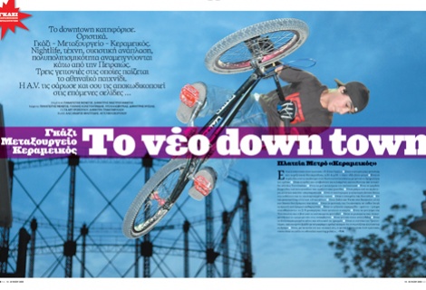 Και ξαφνικά, το 2008, το downtown κατηφόρισε. Οριστικά. Γκάζι - Μεταξουργείο - Κεραμεικός. Nightlife, τέχνη, οικιστική ανάπλαση, πολυπολιτισμικότητα αναμειγνύονται κάτω από την Πειραιώς. Τρεις γειτονιές στις οποίες παίζεται το αθηναϊκό παιχνίδι. Η A.V. γνώρισε και φωτογράφισε, πρώτη, τους πρωταγωνιστές και τους οικοδεσπότες του νέου «κέντρου». Σάρωσε και αποκωδικοποίησε την περιοχή. Και ζήτησε από το μουσικό-κομίστα Παναγιώτη Πανταζή / Pan.Pan να μας σχεδιάσει «Μια Νύχτα στο Γκάζι».