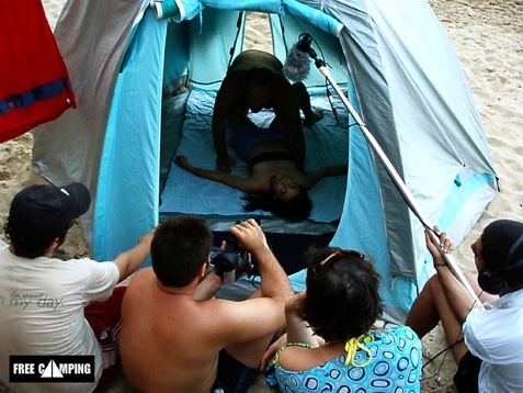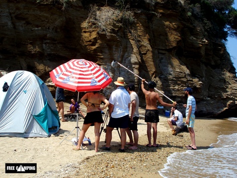 Βάγια: Και δεν είναι μόνο μια τωρινή κατάσταση, είναι κάτι παλιό αυτό. Ίσως τώρα ακόμα περισσότερο. Σχιζοφρένεια! Είναι εντυπωσιακό το πόσο πολύ ανακυκλώνεται η ιστορία. Τέλος πάντων, το «Free Camping» είναι μια χαμηλόφωνη ταινία. Ξεκίνησε αρχικά ως ανάγκη να κάνουμε μία ακόμα μικρού μήκους. Απείχαμε καιρό από τα κινηματογραφικά σετ και μας λείψανε. Γυρίστηκε κοντά στον Σταυρό Χαλκιδικής σε μια παραλία. Ένα σετ, θέλαμε να ελαχιστοποιήσουμε όσο μπορούσαμε το κόστος. Όλες μας οι ταινίες είναι ανεξάρτητες, εννοώ χωρίς καμία υποστήριξη από τους επίσημους κρατικούς φορείς του κινηματογράφου. Ακόμα και με άλλες παλιότερες διακρίσεις, πολλές συμμετοχές σε φεστιβάλ και βραβεία, τίποτα. Αόρατοι! Θα έλεγα και άλλα πιπεράτα, αλλά δεν μου αρέσει η γκρίνια, γενικότερα.