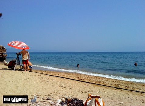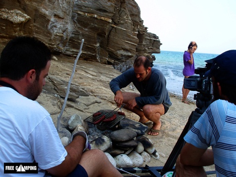 Είχαμε βέβαια και δύσκολες ώρες, γιατί δουλέψαμε τις ημέρες πριν τον Δεκαπενταύγουστο και μας πέτυχε ο καύσωνας. Πέρα από τη ζέστη, βέβαια, υπήρχε και το θέμα του εξοπλισμού (κάμερες, φώτα κτλ). Τον κουβαλούσαμε μέσα από χωματόδρομους, ελαιώνες, τον ανεβάζαμε από την απότομη πλαγιά της παραλίας κάθε βράδυ και το άλλο πρωί τον ξαναστήναμε.