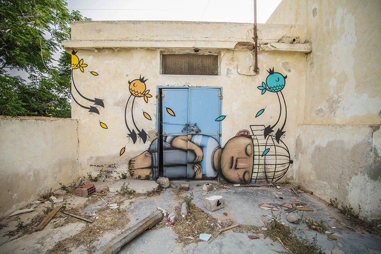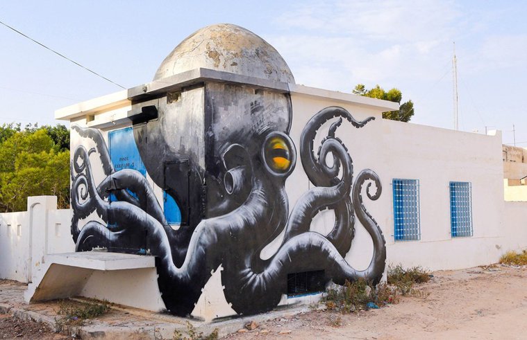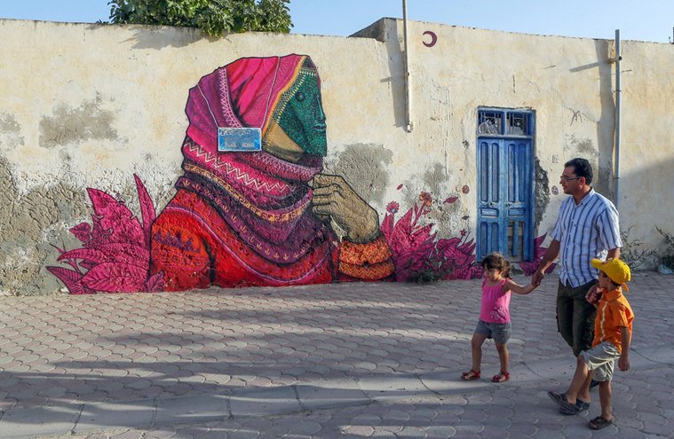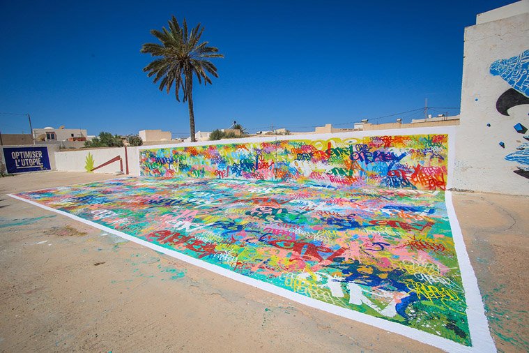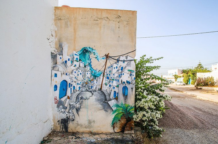 Ένα νησί, ένα χωριό, 150 καλλιτέχνες, εκατοντάδες murals. Σε σύγχρονο υπαίθριο «μουσείο graffiti» μετατράπηκε ένα από τα παλαιότερα χωριά στο νησί Djerba, ή αλλιώς «Νησί των Ονείρων» στη Τυνησία. 150 street artists, από 30 διαφορετικές χώρες δούλεψαν για δύο μήνες μέχρι να ολοκληρώσουν, κάτι παραπάνω από ένα καλλιτεχνικό πρότζεκτ, την μεταμόρφωση του ερειπωμένου χωρίου του Erriadh, σε ένα παραμυθένιο τοπίο. Το «Djerbahood» επιμελήθηκε ο καλλιτέχνης Mehdi Ben Cheikh και ανάμεσα στους καλλιτέχνες που δούλεψαν για αυτό βρίσκονται παγκοσμίως γνωστοί street artists.