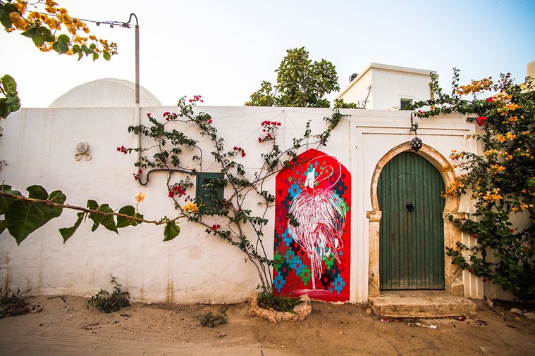 Εγκαταλελειμμένα σπίτια, παράθυρα, πόρτες, μάντρες, όλα αποτέλεσαν έναν τεράστιο καμβά, πάνω στον οποίο οι καλλιτέχνες εκφράστηκαν και άφησαν το στίγμα τους, επηρεασμένοι είτε από την πολιτιστική κληρονομιά της Τυνησίας είτε από την κουλτούρα της χώρας τους. Murals πολύχρωμα, αστεία, κοινωνικά μηνύματα φιλοξενούνται σε κάθε σημείο του χωριού. Το νησί Djerba έχει ήδη κεντρίσει το ενδιαφέρον των μέσων ενημέρωσης διεθνώς και αναμένεται να αποτελέσει έναν ελκυστικό τουριστικό προορισμό και να δώσει ζωή σε κάποια ξεχασμένα τετραγωνικά του πλανήτη.