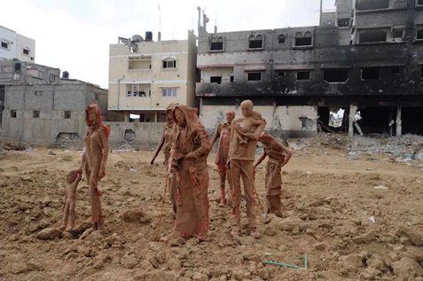 Μια επταμελής οικογένεια από πηλό στέκεται ανάμεσα στα συντρίμμια του πολέμου της Γάζας. Μια οικογένεια, που από μόνη της αποτελεί «διαμαρτυρία» απεικονίζοντας τον πόνο και την καταστροφή του πολέμου και αποτίοντας συγχρόνως φόρο τιμής στα θύματα των συγκρούσεων μεταξύ Παλαιστίνης και Ισραήλ. Πρόκειται για τα αγάλματα του Παλαιστίνιου καλλιτέχνη Iyad Sabbah στην συνοικία Αλ Σετζάγια, μία από τις πιο φτωχές της Γάζας. Η έκθεση «Worn out» εγκαινιάστηκε το Σάββατο 18/10.