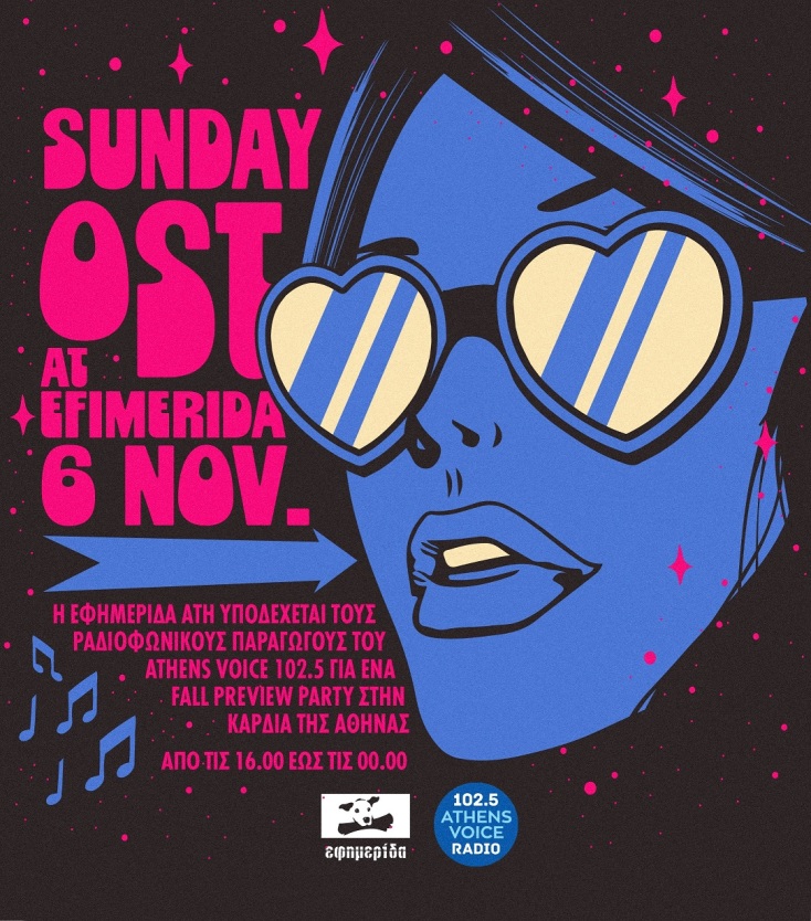 Sunday OST: Party από το bar Εφημερίδα ATH και τον ραδιοφωνικό σταθμό Athens Voice 102.5, την Κυριακή 6 Νοεμβρίου, Σίνα και Βησσαρίωνος, 16.00-00.00.