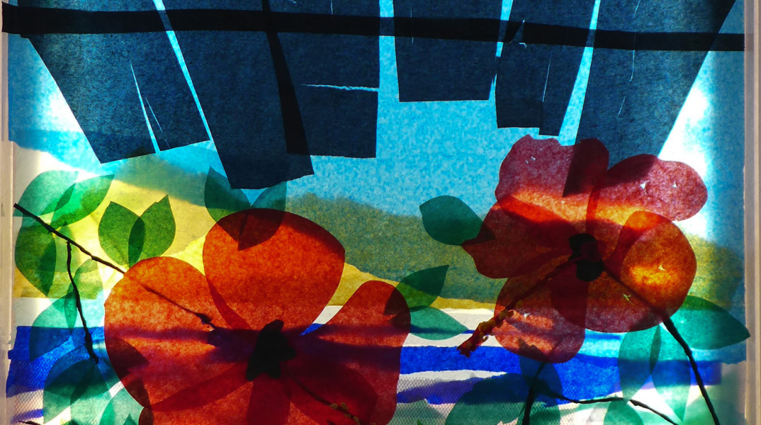 ζωγραφικά υλικά του. Μετατρέπει αλχημικά την πράξη της καταστροφής σε πράξη καλλιτεχνικής δημιουργίας. Τα χρωματιστά, διάφανα χαρτιά σκίζονται και κόβονται με γρήγορες κινήσεις, με αυτόματες, αυθόρμητες χειρονομίες που εκτονώνουν τον ψυχισμό. Τα τεμαχισμένα σπαράγματα χρησιμοποιούνται ως δομικά στοιχεία, κτίζοντας επάλληλες, αλληλοκαλυπτόμενες επιφάνειες. Με τα σχήματα που προκύπτουν τυχαία αλλά και τις διαφορετικές επιστρώσεις της ανακυκλωμένης ύλης, ο Γιαλελής συνθέτει υπαινικτικές εικόνες και αινιγματικές αφηγήσεις που ενεργοποιούν τον νου και τη φαντασία.
