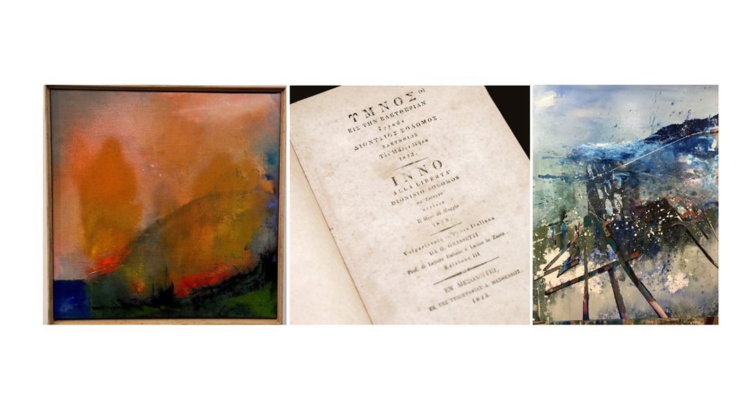 Δίπλα σε σπάνιες εκδόσεις από τις μοναδικές συλλογές της Γενναδείου Βιβλιοθήκης, τα ιστορικά τεκμήρια και τη γραφίδα του ίδιου του Σολωμού, τα έργα του Μανώλη Χάρου μας θυμίζουν πως η συνέργεια ανάμεσα στην ιστορική γνώση που προσφέρει ο πλούτος μιας βιβλιοθήκης και στη δημιουργία της καλλιτεχνικής έμπνευσης, γεννούν τη χαρά της ανακάλυψης.»
