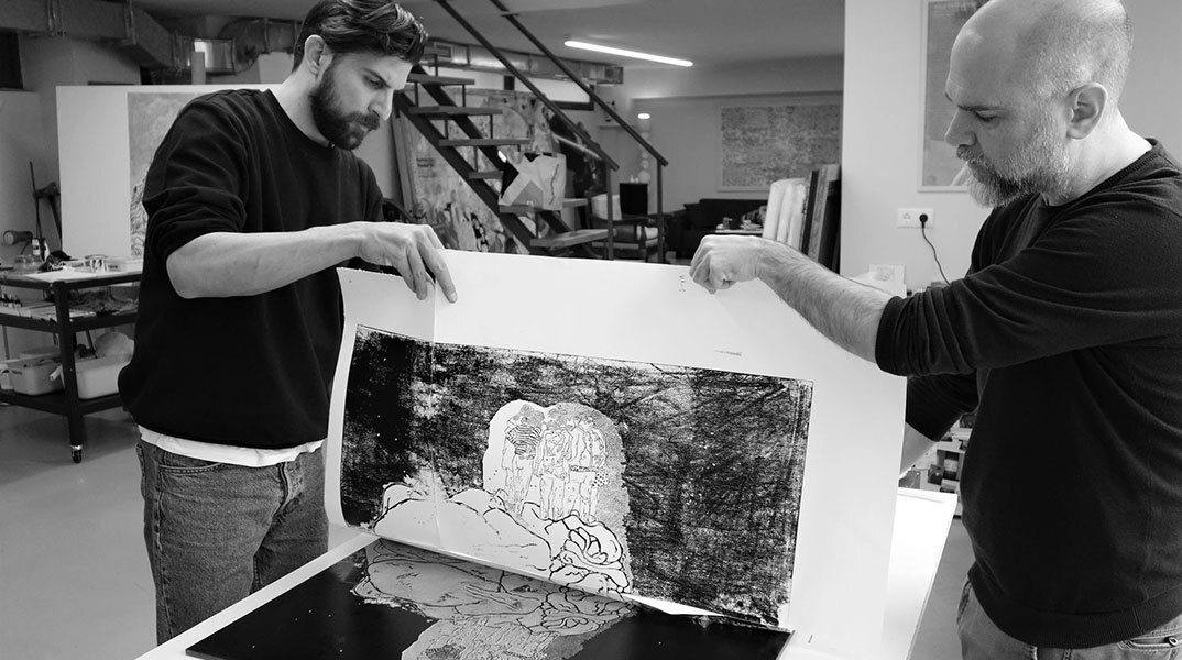 Από τον Ιανουάριο έως τον Μάιο του 2023, δέκα εικαστικοί καλλιτέχνες με διεθνή παρουσία, επιδραστικό έργο και ετερόκλητη καλλιτεχνική γλώσσα, αλλά χωρίς προηγούμενη – ή με ελάχιστη – πρακτική επαφή με το εργαλείο της χαρακτικής, κλήθηκαν να εκπαιδευτούν, μελετώντας νέες τεχνικές εντός και εκτός του πεδίου δράσης τους, δημιουργώντας νέα έργα.