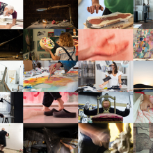 Στην έκθεση, παρουσιάζονται στιγμιότυπα από τις Συναντήσεις της Χλόης Ακριθάκη με εικαστικούς καλλιτέχνες στα εργαστήριά τους αλλά και εκτός