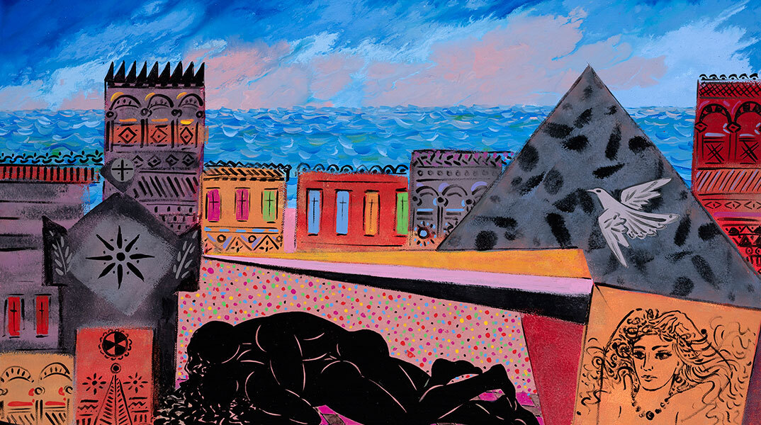 Είκοσι έξι σημαντικοί Έλληνες εικαστικοί μετουσιώνουν σε έργα τέχνης τα δικά τους όνειρα που γεννήθηκαν με φόντο τη θάλασσα.