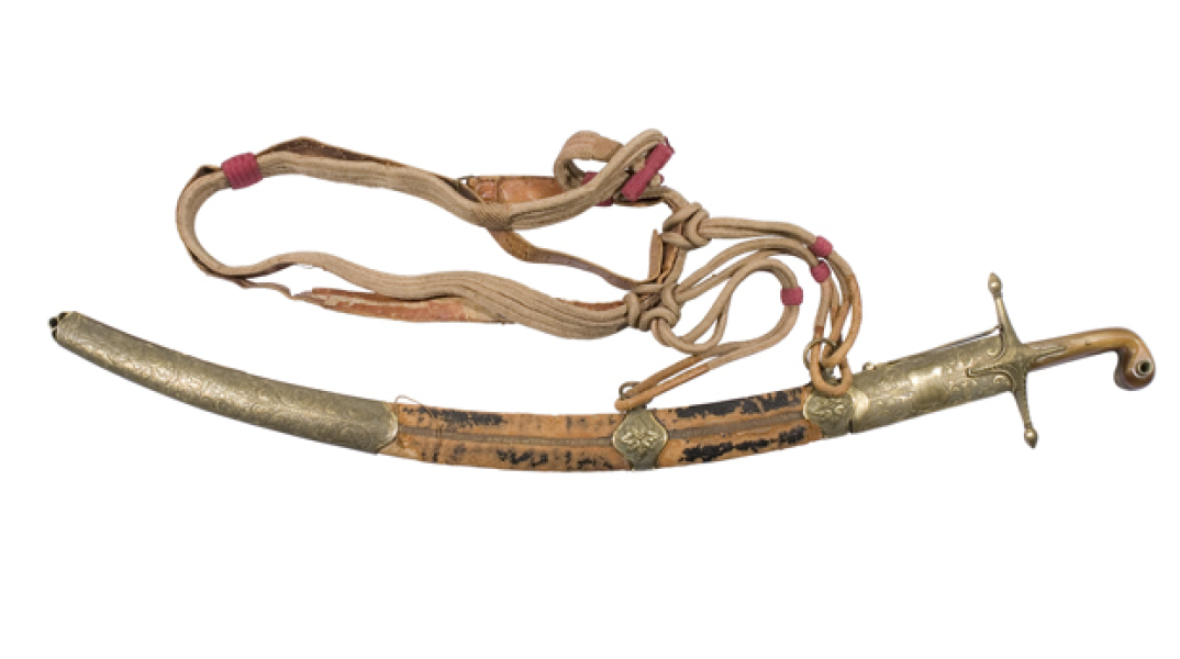 Κεντρική φωτογραφία: Πάλα, δώρο του Θεόδωρου Κολοκοτρώνη στο Φαβιέρο (1829). Χάλυβας με ένθετη χρυσή διακόσμηση στο έλασμα λαβή κεράτινη, φυλακτήρας σταυροειδής επίχρυσος. Στη μια όψη του ελάσματος, φέρει σφραγίδα Σολομώντα με επιγραφή με χρυσό και διάχωρο με αραβική στην άλλη όψη. Θήκη με μαύρο δέρμα και επίχρυσα τμήματα, αορτήρας από κορδόνια και δέρματα. Στο άνω μέρος της θήκης σε πλακίδιο, εγχάρακτα η επιγραφή: Donné par Colocotroni le 6 Janvier 1829