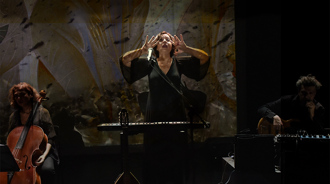 Συμπράττει με τον Γεράσιμο Γεννατά μεταμορφώνοντας τις μαρτυρίες των απλών ανθρώπων, τα ημερολόγια και την αλληλογραφία Σεφέρη- Λορετζάτου σε λόγο θεατρικό που γεννιέται μέσα σ’ ένα διαρκώς μεταβαλλόμενο ηχητικό περιβάλλον. Η φωνή ταξιδεύει από την υμνωδία, στο τραγούδι, στον λόγο.