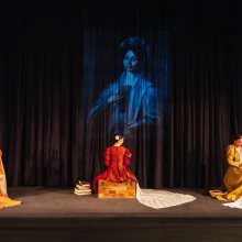 Στη θεατρική παράσταση τρεις ηθοποιοί υιοθετούν την πολυδιάστατη προσωπικότητα της, αναδεικνύοντας τις διάφορες πτυχές και τις εσωτερικές της συγκρούσεις. Κάθε ηθοποιός αναλαμβάνει ένα μοναδικό κομμάτι της ψυχής της, επιβεβαιώνοντας την πολυπλοκότητα της ανθρώπινης ύπαρξης. Ο δε αφηγητής παίζει τον ρόλο του συγγραφέα και αποτελεί και αυτός μέρος της ίδιας ιστορίας, πυκνώνοντας με αυτόν τον τρόπο την αίσθηση της συνύπαρξης μεταξύ του θεατή και της παράστασης.