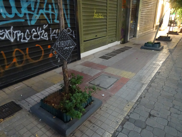 Η οδός Αθ. Αξαρλιάν είναι ένα μικρό στενάκι κοντά στην Ερμού, η πεζοδρομημένη προέκταση της Λέκκα. Ανάμεσα στα ωραία μαγαζιά, την σπάνια ησυχία και τα… diy παρτέρια, φυτρώνουν άγρια μέντα, ρίγανη, λεβάντα, δυόσμος και μελισσόχορτο. Τα μικρά μποστάνια στο κέντρο της πόλης συνοδεύονται κι από ταμπέλα-μαυροπίνακα που γράφει με κιμωλία το όνομά τους επάνω στον κορμό -και στα αγγλικά παρακαλώ. Δεν ξέρουμε ποιος τα φύτεψε, ποιος τα ποτίζει και ποιος έφτιαξε τις πινακίδες, αλλά μας αρέσουν πολύ. Ευχαριστούμε!