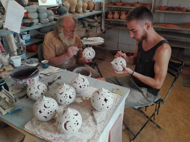 Στο εργαστήριο στο Μεγαλοχώρι μπορούν να μάθουν την τέχνη του πηλού, είτε για χόμπι είτε σαν επάγγελμα, άνθρωποι όλων των ηλικιών, από παιδιά μέχρι ενήλικες. Οι μαθητές του προέρχονται τόσο από την Ελλάδα όσο και από το εξωτερικό, ενώ μαθήματα γίνονται και το χειμώνα. Η Κρίστι είναι επίσης κεραμίστρια όπως και ο γιος τους Ορφέας, ο οποίος έχει τελειώσει την Σχολή Καλών Τεχνών και γνωρίζει ήδη την κεραμική τέχνη από τους γονείς του.