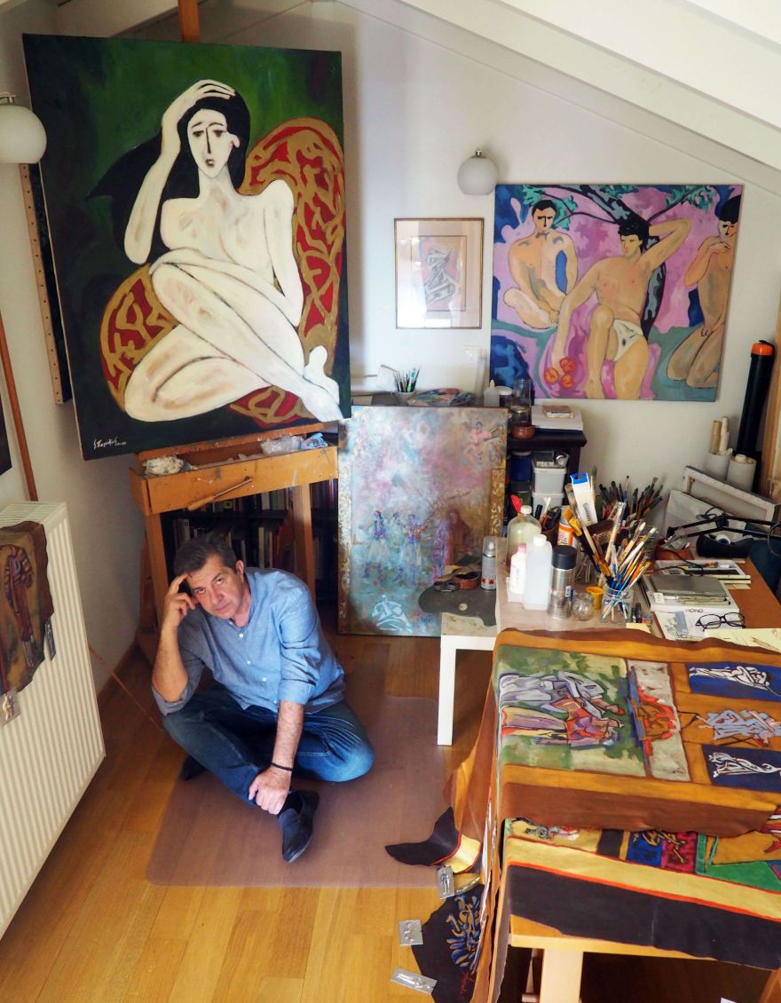 Τα πρότυπά μου και η αρχή της ιστορίας μου ήταν καλλιτέχνες όπως ο Κωστάκης ο Λούστας, ο γλύπτης Δημήτρης Καλαμάρας, ο Κούλης Στερίκας. Ο τόπος είχε την τύχη, μετά την καταστροφή του ’22, να δεχθεί ξεριζωμένους Μικρασιάτες που εγκαταστάθηκαν και δημιούργησαν σ’ αυτόν. Ανάμεσά τους και ο αείμνηστος Ηλίας Βυζάντης (1910-1980). Αυτή ήταν και η αρχή ώστε να δημιουργηθεί στην πόλη μια κυψέλη τέχνης και κάποια χρόνια αργότερα (το 1977) να αποκτήσει ένα Μουσείο Σύγχρονης Τέχνης αποτελούμενο από μικρό αριθμό έργων της Εθνικής Πινακοθήκης. Από την πρώτη στιγμή τα σωληνάρια, η μυρωδιά από το νέφτι, τα πινέλα, τα ξεχαρβαλωμένα από την πολυχρησία καβαλέτα με μετέφεραν σε έναν χώρο που ήθελα μεγαλώνοντας να ακολουθήσω και να γίνω ένα με αυτόν.