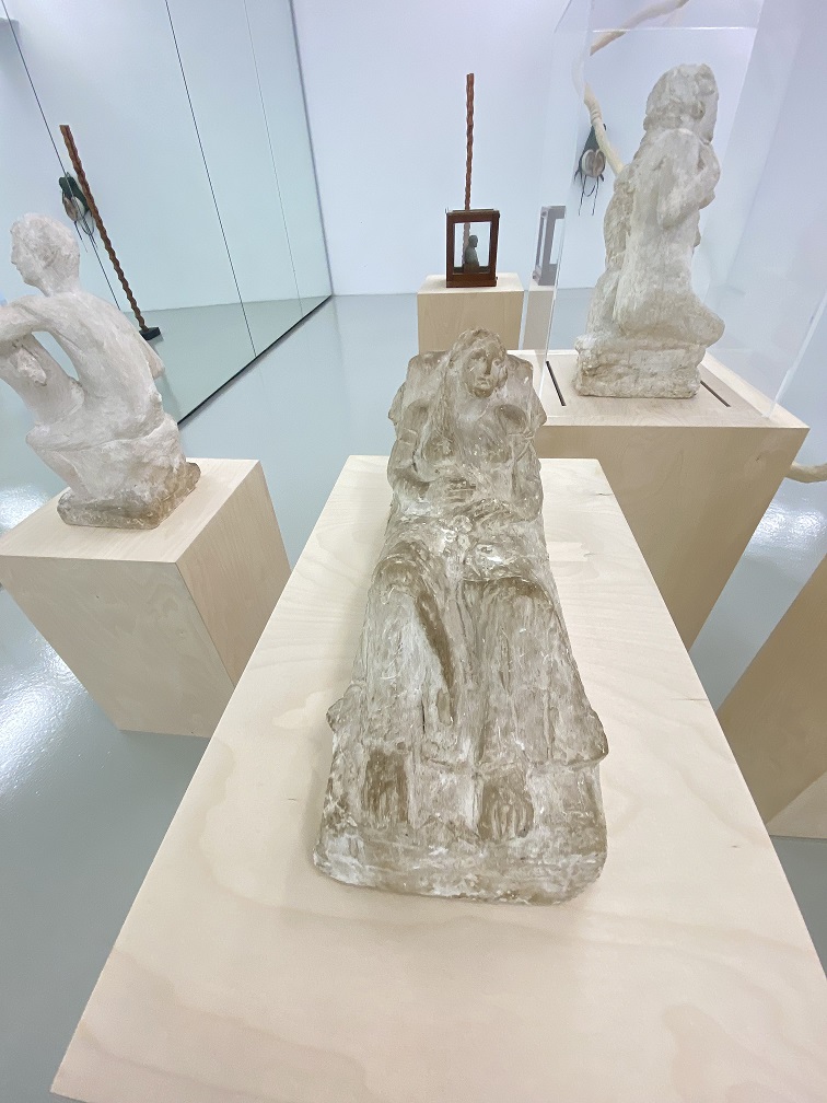 Περπατώ, περπατώ εις το δάσος του Φίσερ και βλέπω τα εκθέματα σε μια ροή που με παρασύρει από μια φωτογραφία του Ανδρέα Εμπερίκου, το σακίδιο του Γιώρου Λάππα, τη «γειτονιά» του Γιαννούλη Χαλεπά: προσχέδια, προπλάσματα έργα του μεγάλου Τηνιακού που έσπασε το καλούπι που του είχε φορεθεί κι αξίωσε να γίνει γλύπτης σε μια κοινωνία μαρμαράδων. Στην επόμενη αίθουσα, με περιμένουν οι αργυροτυπίες του Γιώργου Τουρκοβασίλη, οι κιθάρες της Ντόρας Οικονόμου από πανί και η φωτιστική εγκατάσταση της Ίριδας Τουλιάτου από πλαφονιέρες οροφής από αδρανείς χώρους εργασίας σε κάνει και αναρωτιέσαι: ο καλλιτέχνης του μέλλοντος θα κάνει installations με ring lights κι όχι λάμπες φθορισμού.
