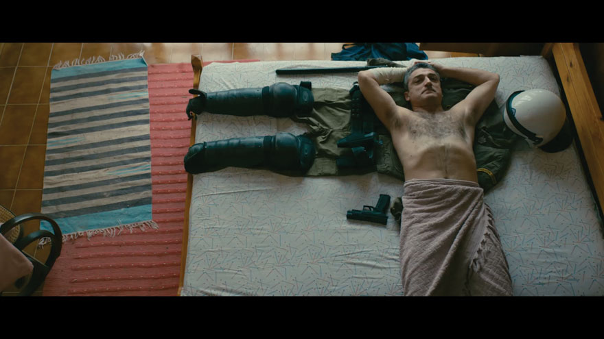 Κυρίως με απασχόλησε και μένα και τον Χρίστο να δώσουμε το πρόσωπο που βρίσκεται πίσω από αυτό το κράνος και τη στολή. Την ιστορία που κρύβεται πίσω από το κράνος και την ασπίδα. Πίσω από αυτά κρύβεται ένας πατέρας, μια μάνα, μια κόρη. Μια οικογένεια που διαλύεται. Το περιτύλιγμα της ιστορίας δεν μας ενδιαφέρει. Μας νοιάζει μόνο αυτό που υπάρχει μέσα της. Η τέχνη ποτέ δεν ασχολήθηκε με το περιτύλιγμα, ασχολείται με την ανθρώπινη μοίρα και όχι με το κοστούμι της.