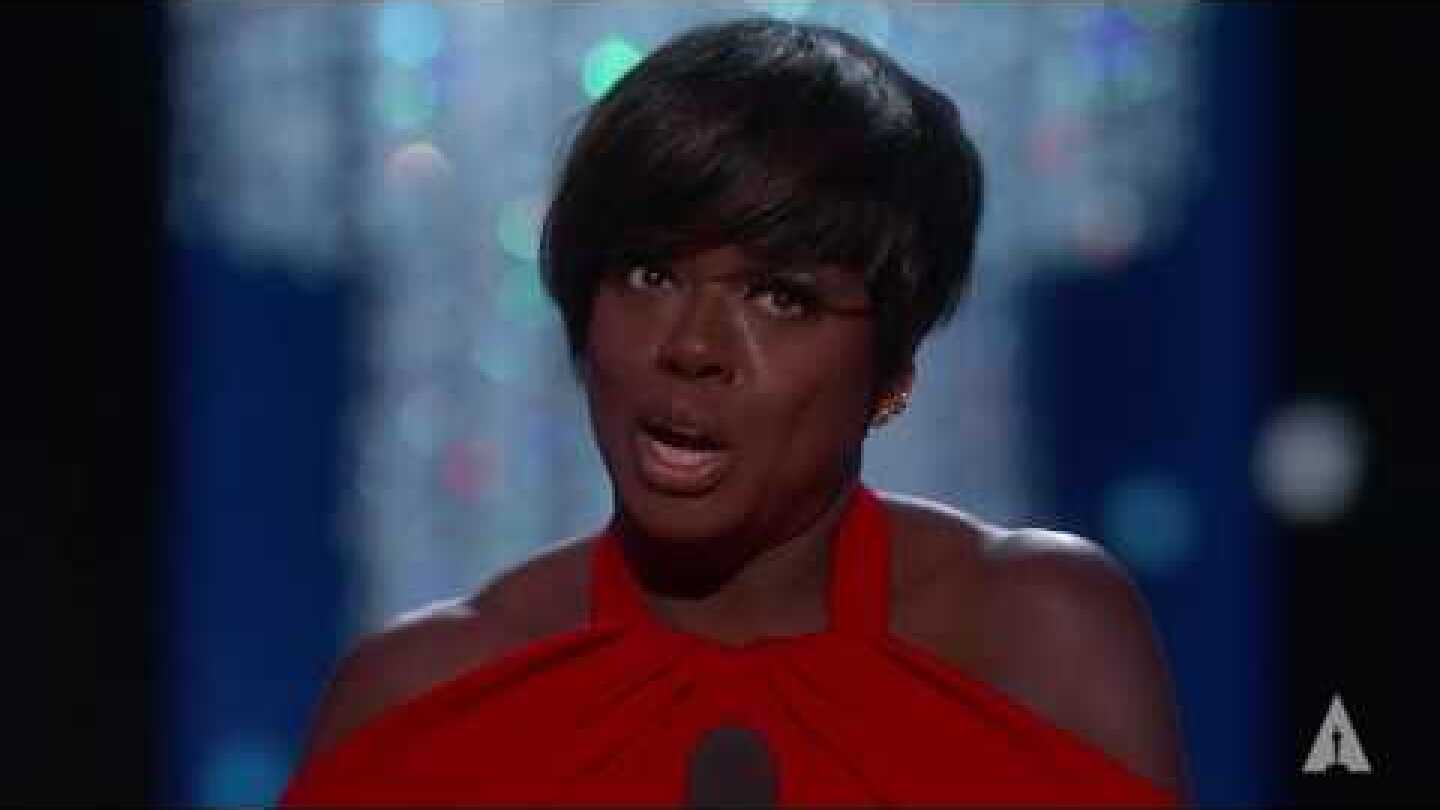 «Ξέρετε, υπάρχει ένα μέρος στο οποίο είναι συγκεντρωμένοι όλοι οι άνθρωποι με τις μεγαλύτερες δυνατότητες κι αυτό είναι το κοιμητήριο. Με ρωτούν συνέχεια – τι είδους ιστορίες θέλεις να πεις Βαϊόλα; Και τους λέω: “Να ξεθάψω αυτά τα σώματα. Να ξεθάψω αυτές τις ιστορίες – τις ιστορίες ανθρώπων που είχαν μεγάλα όνειρα και ποτέ δεν τα είδαν να πραγματοποιούνται, ιστορίες ανθρώπων που ερωτεύτηκαν και έχασαν”. Έγινα καλλιτέχνιδα και ευχαριστώ τον Θεό που το έκανα επειδή είμαστε το μοναδικό επάγγελμα που τιμά τη σημασία του να ζεις τη ζωή», είπε η ηθοποιός με δάκρυα συγκίνησης στα μάτια, κατά τον ευχαριστήριο λόγο.