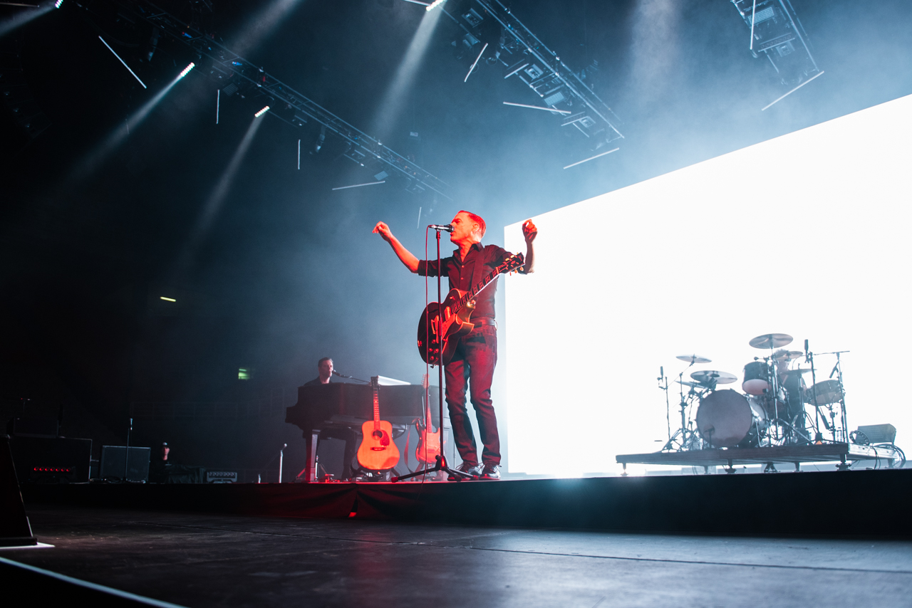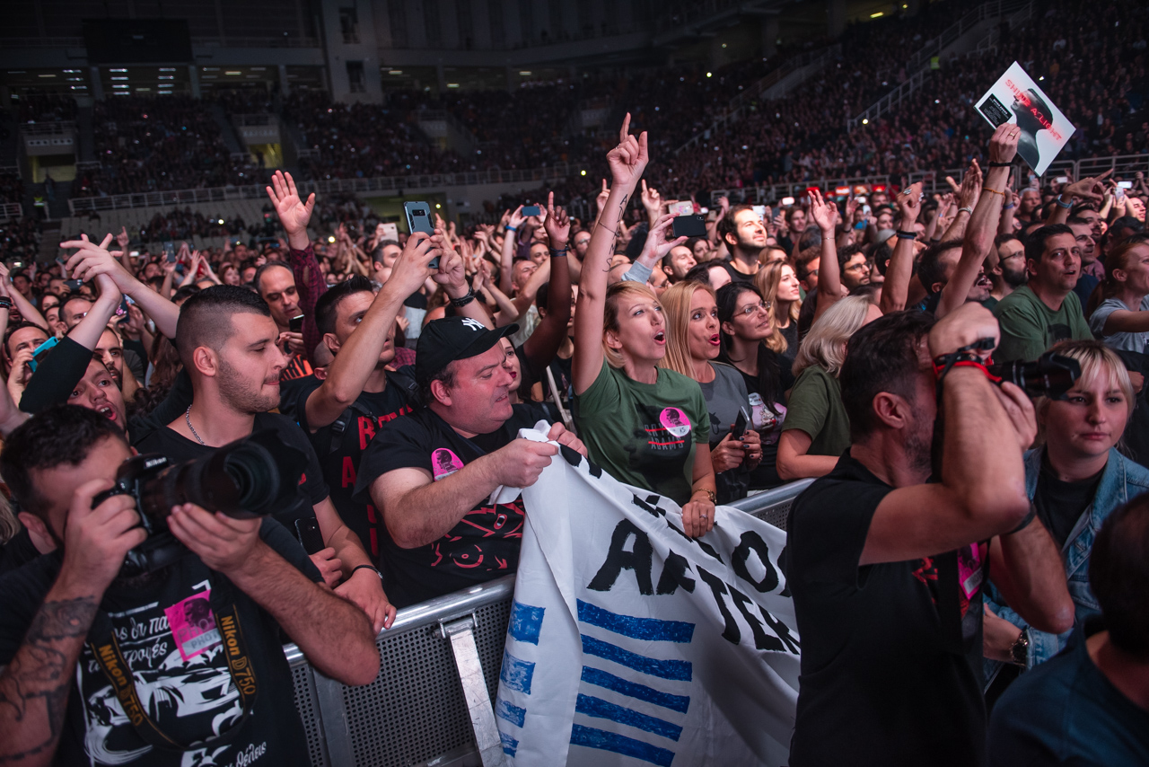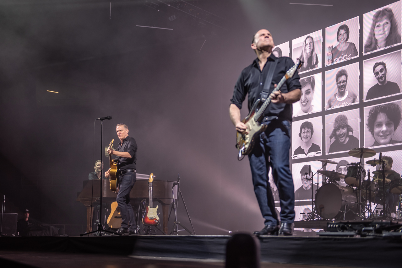 Με μια μικρή καθυστέρηση, έξυπνα βίντεο που προωθούν την ακτιβιστική του δράση και έναν από τους καλύτερους ήχους που ακούσαμε πρόσφατα, λίγο μετά τις 21.25, η Αθήνα σιγοτραγουδά το «The Last Night On Earth», το «Somebody» και το «Can’t Stop This Thing We Started». Φαλακροί, έφηβοι, γκριζομάλληδες, άνθρωποι που έζησαν τα 80s και μεγάλωσαν με τα τραγούδια του Bryan Adams, άνθρωποι που είχαν την περιέργεια να ακούσουν από κοντά τις επιτυχίες του, γίνονται ένα στο «Run To You», κάτι που ο 60χρονος χαρισματικός τύπος που βρίσκεται στη σκηνή εισπράττει και ανταπαντά με ένα «ευχαριστώ» στα ελληνικά.