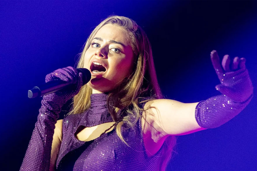 Στην πρώτη πρόβα στο Ρότερνταμ για τη Eurovision 2021 η νεαρή τραγουδίστρια φόρεσε μια ολόσωμη μωβ φόρμα.