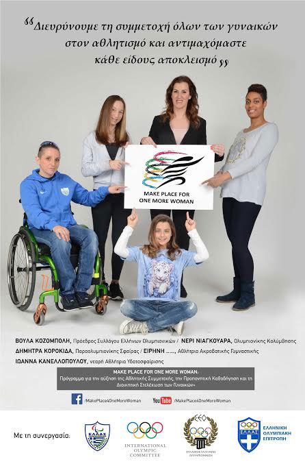 «Make Place For One More Woman». Πρόκειται για το πρόγραμμα που ως στόχο έχει την διεύρυνση της συμμετοχής των όλων γυναικών στον Αθλητισμό, στην προπονητική καθοδήγηση, την διοικητική στελέχωση καθώς και την άρσης των αποκλεισμών.