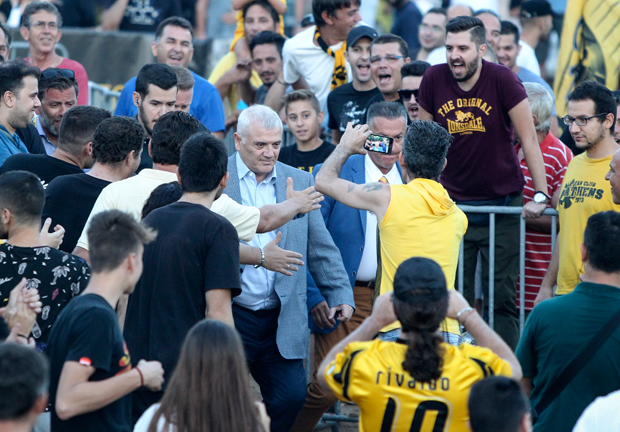 Την Πέμπτη το απόγευμα άνοιξαν οι ουρανοί στην περιοχή, το οικόπεδο γέμισε λάσπες, αλλά τίποτα δεν ήταν ικανό να σταματήσει χιλιάδες φίλους -κάθε ηλικίας- της ΑΕΚ, από το να συρρεύσουν στην εκδήλωση που στήθηκε.
