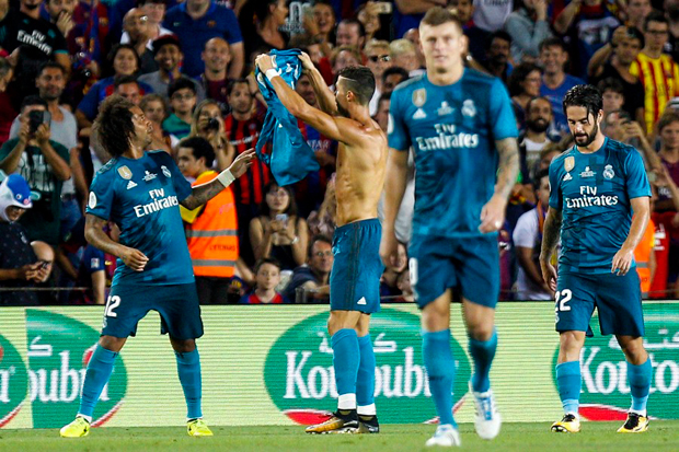 Ο Κριστιάνο Ρονάλντο κατάφερε να κάνει «δικό του» ένα ακόμη ντέρμπι της Ρεάλ Μαδρίτης κόντρα στη Μπαρτσελόνα αν και έπαιξε μισή ώρα στο τέλος. Εμεινε στην αρχή στον πάγκο, μπήκε στο 58', έβαλε μια γκολάρα, έφαγε κίτρινη επειδή πανηγύρισε βγάζοντας τη φανέλα, και λίγα λεπτά αργότερα αποβλήθηκε με δεύτερη κίτρινη για θέατρο καθώς διεκδικούσε πέναλτι! Με το που αποβλήθηκε έσπρωξε τον διαιτητή πριν φύγει για τα αποδυτήρια.