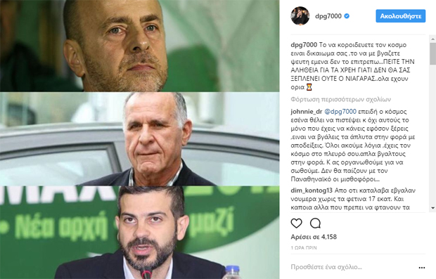 Φυσικά αντέδρασε αμέσως ο Δημήτρης Γιαννακόπουλος ο οποίος από τα ραντεβού με τον (πρώην;) ιδιοκτήτη της ΠΑΕ είχε φύγει με την εντύπωση πως το τελικό ποσό είναι 60 εκατομμύρια. Γι' αυτό ανέβασε αμέσως στο instagram την απάντησή του, κάτω από τις φωτο του Αλαφούζου, του προεδρεύοντος Βασίλη Κωνσταντίνου και του Γαρρή: