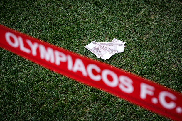 Με τον Ολυμπιακό να κάνει πάρτι στο γήπεδο και τους οπαδούς να πετούν ρούβλια στους παίκτες του Πλατανιά