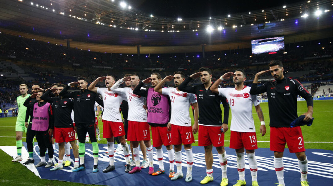 Τούρκοι αθλητές χαιρέτησαν στρατιωτικά μετά το γκολ του Καάν Αϊχάν στο ματς με τη Γαλλία.