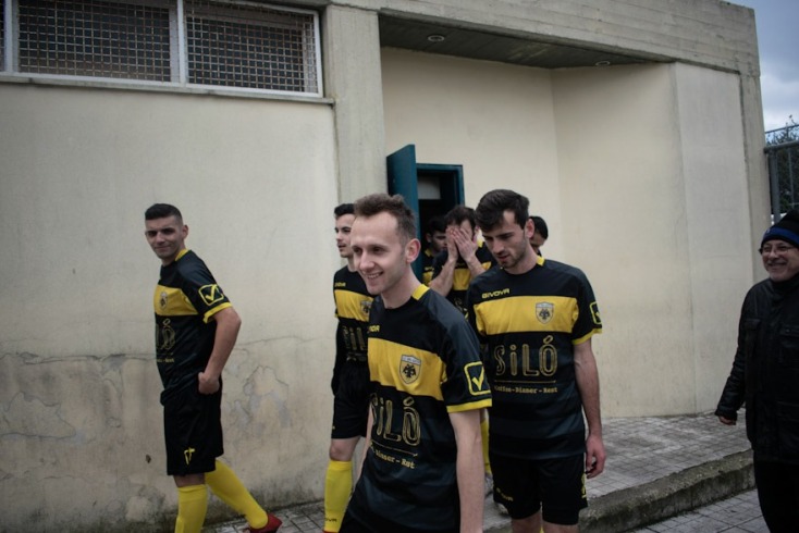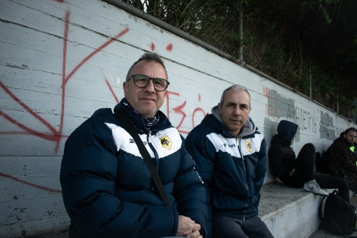 Η ώρα είναι περίπου 11 το πρωί και στο γήπεδο έχουν αρχίσει να καταφθάνουν οι παίκτες της Πέρα Κλουμπ με τις ζακέτες και τις στολές τους. Αν δεν βρισκόμουν στο γήπεδο για τον αγώνα, μπορεί και να τους περνούσα για παίκτες των ακαδημιών της ΑΕΚ, καθώς οι εμφανίσεις τους είναι σχεδόν ίδιες: κιτρινόμαυρες με τον δικέφαλο αετό στην καρδιά. «Βλέπουν τον κιτρινόμαυρο αετό και ψαρωνουν» λέει γελώντας ένας από τους βενιαμίν της ομάδας όταν πάω κοντά του κατά την προθέρμανση. Μπορεί τα χρόνια να έχουν περάσει, ωστόσο, οι δεσμοί της Πέρα Κλουμπ με το προσφυγικό της παρελθόν δεν έχουν σπάσει, καθώς ανάμεσα στα μέλη της ομάδας υπάρχουν ακόμη απόγονοι των Κωνσταντινουπολιτών που επανίδρυσαν το σύλλογο στην Αθήνα. Μεταξύ αυτών, οι δύο αντιπρόεδροί της, ο Θανάσης και ο Αντώνης Πολίτης, εγγόνια του Αντώνη Γρηγοριάδη, εκ των ιδρυτών της.