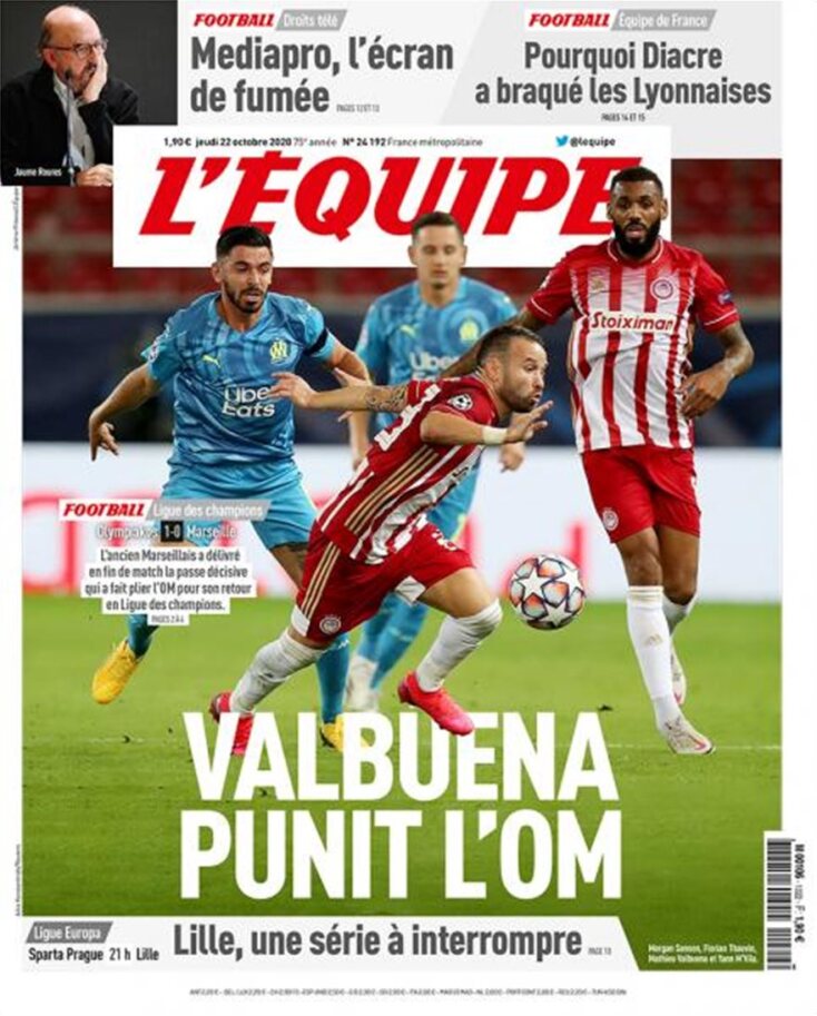 Στον Ολυμπιακό και συγκεκριμένα στον παλιό γνώριμο της Μαρσέιγ, Ματιέ Βαλμπουενά, ήταν αφιερωμένο το πρωτοσέλιδο της "L' Equipe".