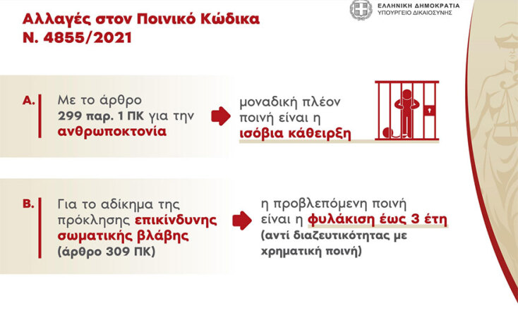 Με το νόμο 48/55 του 2021 επήλθαν σημαντικές αλλαγές για το πλαίσιο κυρώσεων μια σειρά ποινικών αδικημάτων.