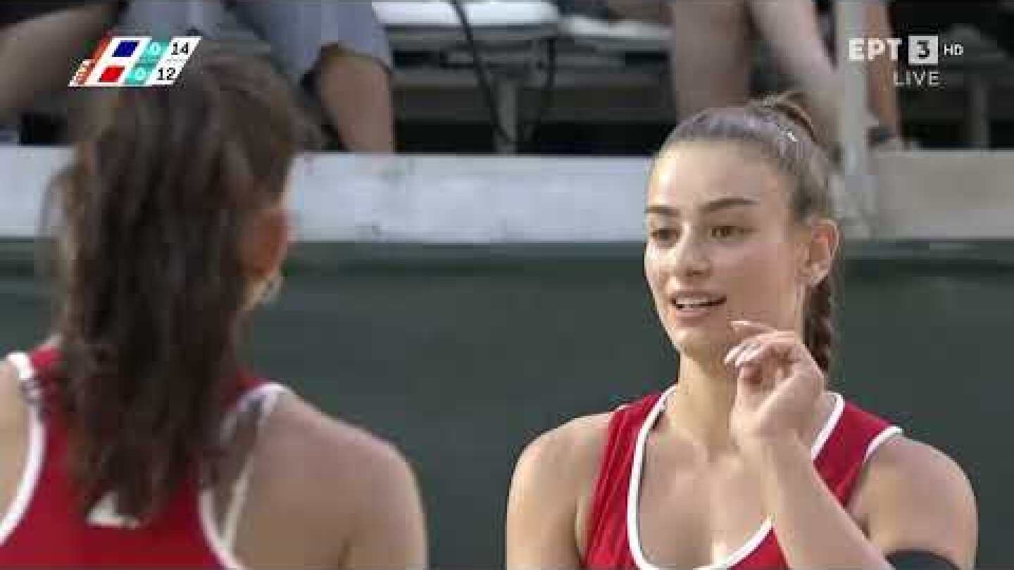 Στις γυναίκες δεν έχει καταφέρει να κάνει κάποια ομάδα το repeat και σε κάθε διοργάνωση προκύπτει και διαφορετική νικήτρια. Μετά τις Τριανταφυλλίδη – Μάτιου και Λάβδα – Σαμπάτη ήρθε η ώρα των Καραγκούνη – Χριστοδούλου να πανηγυρίσουν νικώντας με 2-0 (21-16, 21-16) σετ τις περσινές νικήτριες της Αθήνας Αντωνακάκη – Περδικάκη. «Είμαστε πολύ χαρούμενες για τον τρόπο που αγωνιστήκαμε. Θέλουμε να το επαναλάβουμε αυτό και στην Κρήτη στοχεύοντας στις υψηλές θέσεις» τόνισε η Χρυσάνθη Χριστοδούλου. Η εν ενεργεία πρωταθλήτρια Ελλάδος Δήμητρα Καραγκούνη κατέκτησε πέρυσι τον τίτλο με την Ηλέκτρα Αγριοδήμου και φέτος θέλει να κάνει το ίδιο με άλλη συμπαίκτρια. Για εκείνη όπως και σε όλους τους παίκτες αυτού του επιπέδου οι δύσκολες συνθήκες είναι μία ακόμα μέρα στη δουλειά. «Η υψηλές θερμοκρασίες και ο αέρας είναι ένα μέρος του παιχνιδιού και όποιος ανταπεξέρχεται σε αυτά, έχει τις περισσότερες πιθανότητες να κερδίσει» μας είπε η Δήμητρα Καραγκούνη.