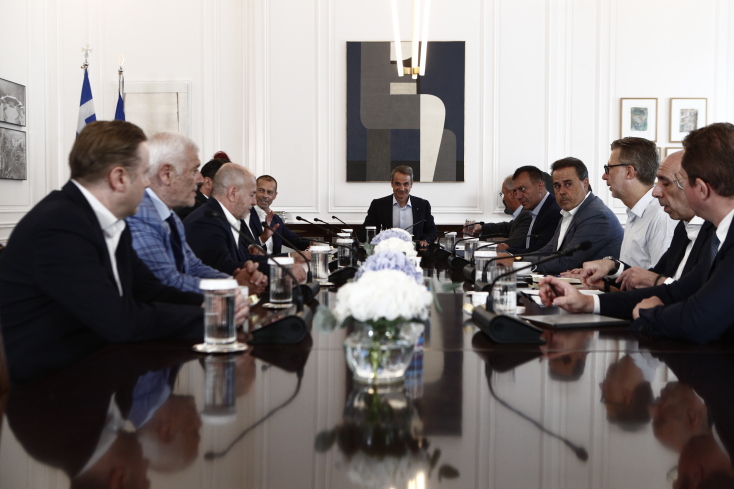 Μετά και τη σύσκεψη με τους ιδιοκτήτες Ολυμπιακού, ΠΑΟ και ΑΕΚ και τον εκπρόσωπο του ΠΑΟΚ, ο Κυριάκος Μητσοτάκης θα προχωρήσει σε κοινές δηλώσεις με τον πρόεδρο της UEFA.