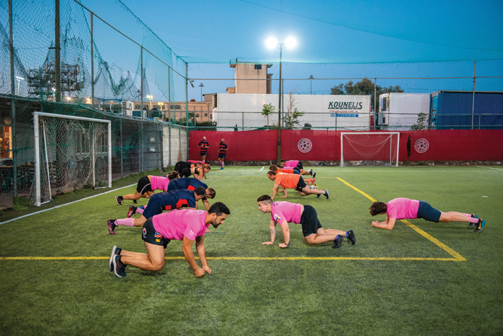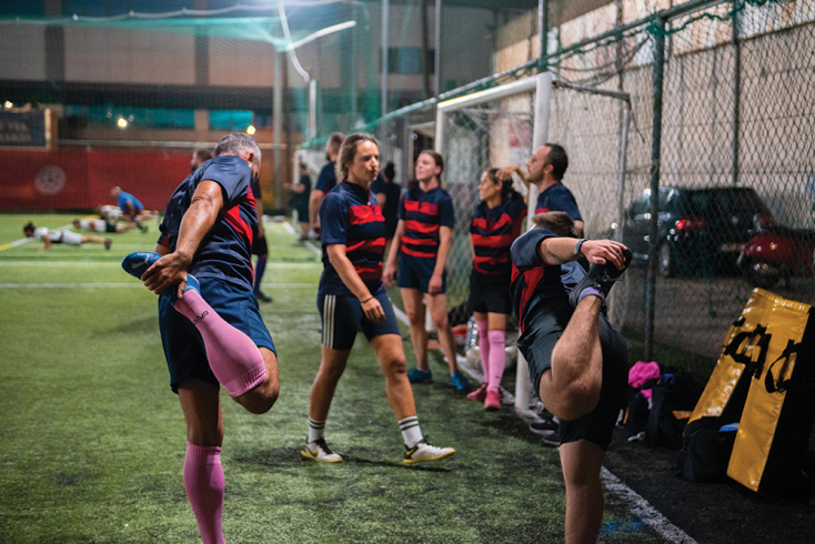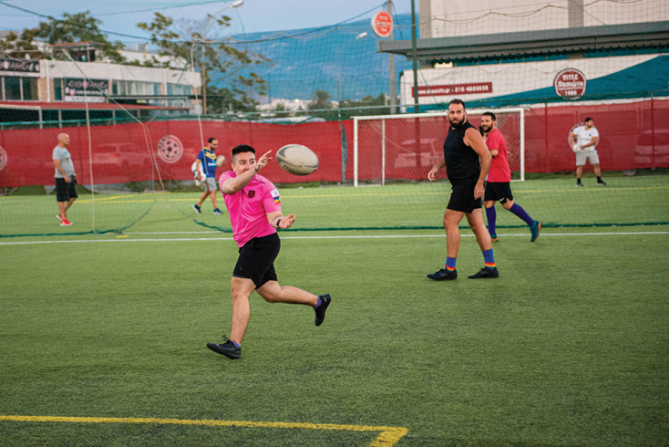 Στην περίπτωση των Κενταύρων των Αθηνών, της πρώτης queer ράγκμπι ομάδας της πόλης, όπως μου λέει ο Άγις Μπαρδόπουλος, ένας από τους ιδρυτές της, δεν ισχύει τόσο η ομοερωτική γοητεία του παιχνιδιού –άλλωστε εδώ φοράνε όλοι και όλες αρκετά φαρδιά σορτς αν το τοποθετούμε εκεί-, αλλά η ζεστασιά και η ασφάλεια που νιώθει κανείς μέσα στην κοινότητα.