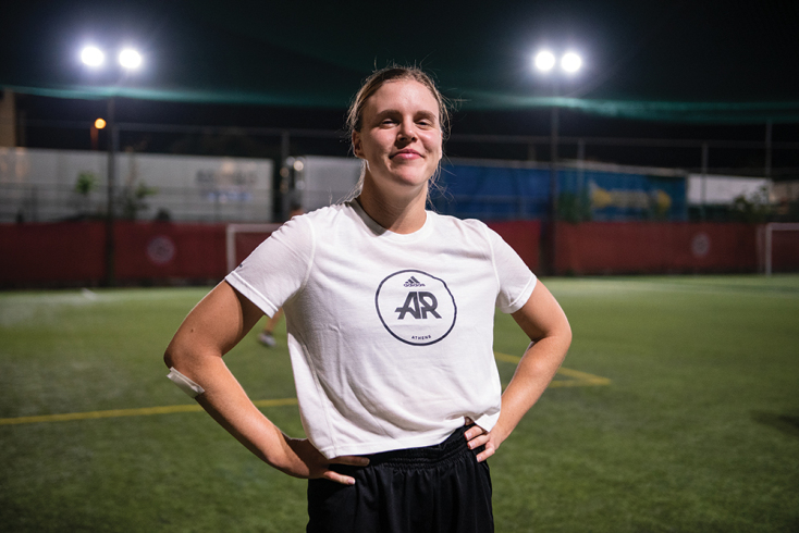 «Είμαι Πολωνή. Βρέθηκα στις Κένταυρες πριν τρία χρόνια, μέσω μιας φίλης που την είδα μία μέρα με μελανιές και χτυπήματα. Τη ρώτησα τι της είχε συμβεί, και μου λέει ‘’παίζω σε μία ομάδα ράγκμπι θέλεις να έρθεις;’’ Δεν είχα πριν καμία εμπειρία στον αθλητισμό ούτε στο ράγκμπι. Πιστεύω ότι η ομορφιά της ομάδας είναι ο σεβασμός, η εμπιστοσύνη, αλλά και το κομμάτι της διασκέδασης. Αυτά ήταν που με έκαναν να μείνω. Σίγουρα είναι και σκληρό άθλημα, πολλές φορές έχω φύγει με μελανιές και χτυπήματα, αλλά δεν θεωρώ ότι είναι αποτρεπτικό για κάποιον. Σε αυτή τη φάση, επειδή προετοιμαζόμαστε για πρωτάθλημα είμαστε πιο “στα σοβαρά μας”, αλλά υπάρχουν πολλές αστείες στιγμές. Μια φορά στην προπόνηση έπιασε τόση βροχή που οριακά δεν έβλεπες αλλά δεν σταματούσαμε, περνούσαμε πάρα πολύ ωραία, γελούσαμε και συνεχίζαμε. Από άλλες ομάδες δεν έχω συναντήσει ποτέ κάποια περίεργη συμπεριφορά απέναντί μας. Επειδή ηλικιακά το φάσμα των παικτών που έχω συναντήσει σε όλες τις ομάδες είναι μεταξύ 20 και 45, αν και βάζω ένα στερεότυπο τώρα, θεωρώ ότι αυτές οι ηλικίες είναι πιο “καταδεκτικές” να το πω; Πιο ώριμες; Πάντως κανένας δεν κάθεται να φερθεί αρνητικά απέναντί μας. Γιατί να το κάνει αυτό;»