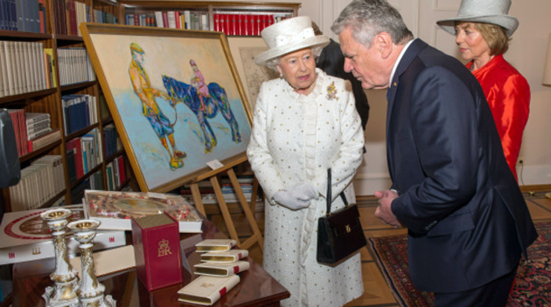 Επίσημη επίσκεψη πραγματοποιεί από την Τρίτη η βασίλισσα της Αγγλίας, Ελισάβετ Β΄, στη Γερμανία. Σύμφωνα με το πρωτόκολλο ο Γερμανός πρόεδρος Γιοακίμ Γκάουκ χάρισε ένα δώρο στη βασίλισσα κατά τη συνάντησή τους. Το δώρο ήταν ένας πίνακας της εικαστικού Νικόλ Λέιντενφροστ που απεικονίζει τη βασίλισσα της Αγγλίας σε παιδική ηλικία να ιππεύει ένα πόνι, το οποίο βαστά από τα γκέμια ο πατέρας της Γεώργιος ο Στ'.