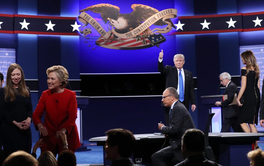 Αυτή ήταν η πρώτη τηλεμαχία της 68χρονης Κλίντον με τον 70χρονο Τραμπ και θα ακολουθήσουν άλλες δύο.