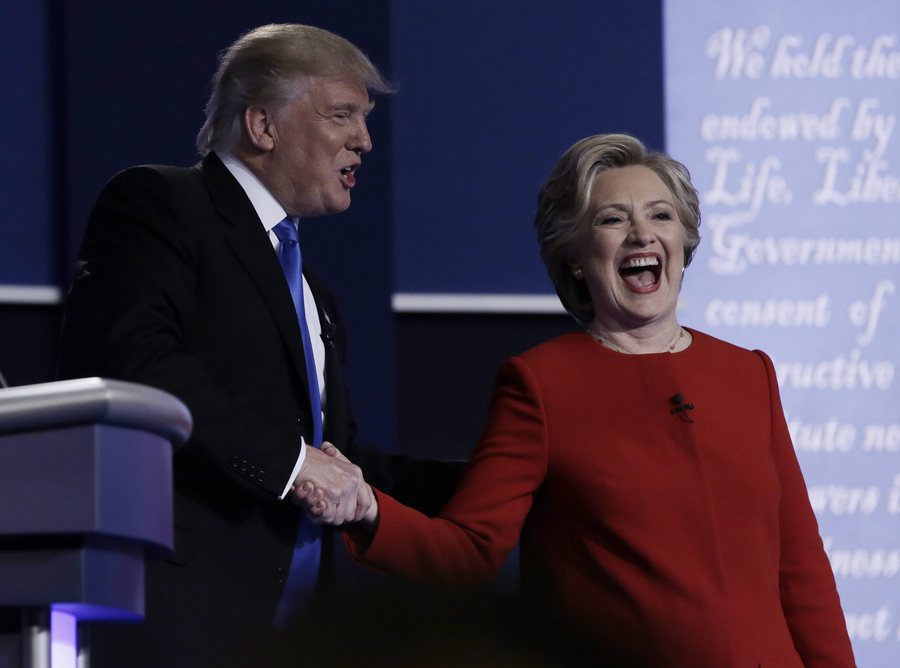 Οι δύο «μονομάχοι» της αμερικανικής προεδρίας διασταύρωσαν τα ξίφοι τους στο πρώτο debate για τον «θρόνο» του Λευκού Οίκου, που διεξήχθη στο πανεπιστήμιο Χόφστρα στο Λονγκ Αϊλαντ της Νέας Υόρκης. Η πρώτη τηλεμαχία ανάμεσα έσπασε όλα τα ρεκόρ τηλεθέασης αφού την παρακολούθησαν τουλάχιστον 100 εκατομμύρια άνθρωποι. Η Χίλαρι Κλίντον εμφανίστηκε ντυμένη στα κόκκινα και σε καλή κατάσταση παρά την πρόσφατη περιπέτεια της υγείας της, και αντάλλαξε μια χειραψία με τον Ντόναλντ Τραμπ.