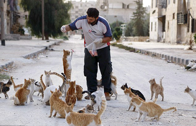 Ο Μοχάμεντ Αλά Τζαλίλ ζει στο πολιορκημένο Χαλέπι της Συρίας. Κυκλοφορεί στις ισοπεδωμένες γειτονιές που κάποτε θύμιζαν πόλη. Τον ξέρουν και οι πέτρες. Είναι ο «σωτήρας των αδέσποτων, αβοήθητων γατιών»