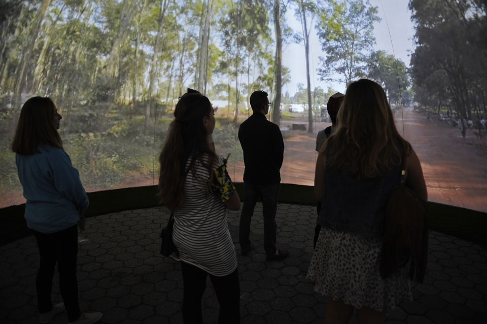Η εμπειρία της έκθεσης ξεκινάει μέσα σε ένα κλειστό δωμάτιο (dome) όπου τριγύρω (εντελώς τριγύρω όμως – σε 360 μοίρες) προβάλλεται ένα ας το πούμε εισαγωγικό βίντεο για τα όσα ωθούν έναν άνθρωπο να αφήσει σπίτι και πατρίδα και να αρχίσει το ταξίδι του. Σκηνές πολέμου, πείνας και ταλαιπωρίας. Και ο επισκέπτης δεν είναι μπροστά σε όλο αυτό αλλά μέσα του.