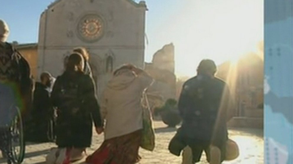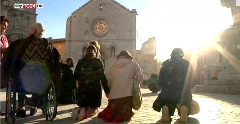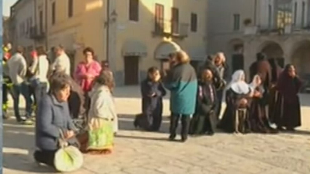 Στη Νόρσια, τουρίστες και κάτοικοι συγκεντρώνονται στην πλατεία της πόλης, ενώ οι πυροσβέστες εκτιμούν τις ζημιές: