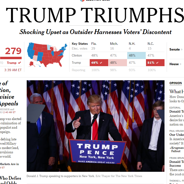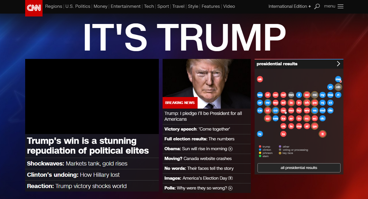 Ενδεικτική είναι η δήλωση σχολιαστή του CNN «Λες στα παιδιά σου: Μην γίνεσαι νταής, μη γίνεσαι μισαλλόδοξος. Λες στα παιδιά σου: να διαβάζεις τα μαθήματά σου, να είσαι προετοιμασμένος. Και μετά έρχεται αυτό το αποτέλεσμα και οι άνθρωποι βάζουν τα παιδιά τους στο κρεβάτι σήμερα και φοβούνται την ώρα του πρωινού. Αναρωτιούνται: "Πώς θα το εξηγήσω αυτό στα παιδιά μου;"».