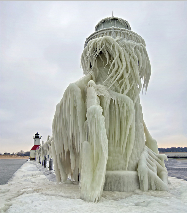 Πολύ κάτω από το μηδέν έχει πέσει η θερμοκρασία στο Μίσιγκαν των Ηνωμένων Πολιτειών. Η λίμνη έχει παγώσει και η προβλήτα και ο φάρος του Αγίου Ιωσήφ έχουν καλυφθεί από πάγο και σε κάποια σημεία σχηματίζουν περίτεχνους σταλακτίτες.
