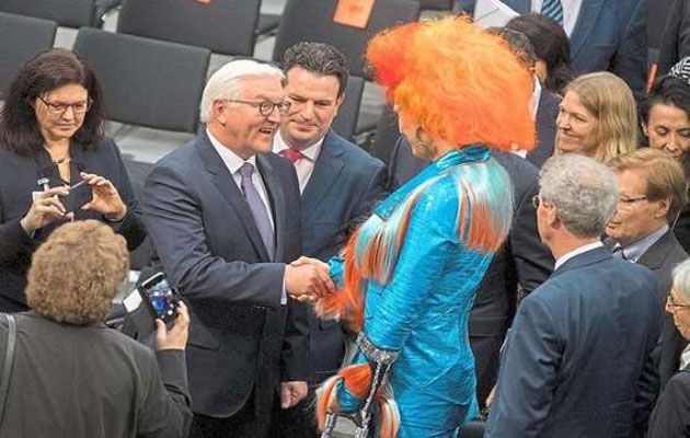 Γνωστή στη χώρα για τις τηλεοπτικές της εμφανίσεις και τις ακτιβιστικές της δραστηριότητες υπέρ των δικαιωμάτων των ζώων, των ασθενών με AIDS και κατά του ρατσισμού, η drag queen Ολίβια Τζόουνς υποσκέλισε σε δημοσιότητα τον νέο πρόεδρο της Γερμανίας Φρανκ Βάλτερ Σταϊνμάιερ και μονοπώλησε τις αγκαλιές με την Ανγκελα Μέρκελ.