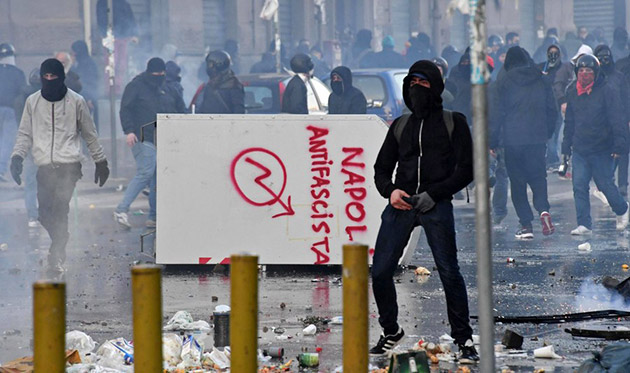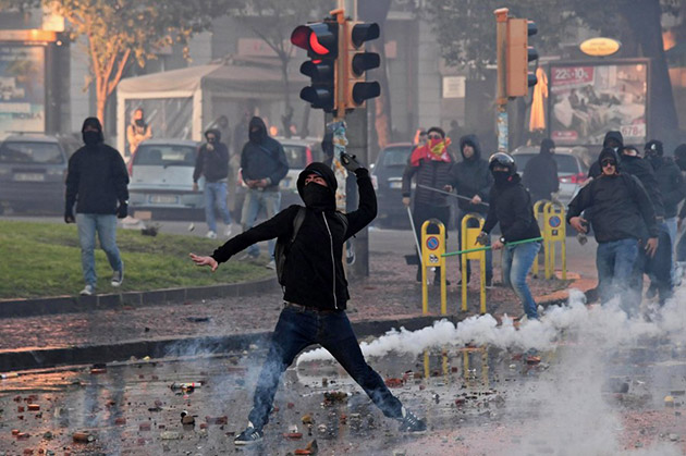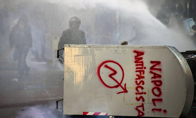 Xάος επικρατεί στους δρόμος της Νάπολι στην Ιταλία, όπου διαδηλωτές συγκρούονται με αστυνομικούς. Η αστυνομία κάνει χρήση χημικών και αντλιών νερού για να απομακρύνει το πλήθος.