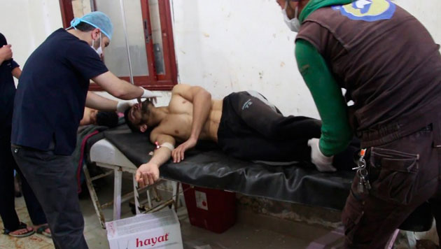 Γιατρός δήλωσε στο αραβικό τμήμα του BBC ότι βομβαρδίστηκε επίσης νοσοκομείο, στο οποίο είχαν μεταφερθεί τραυματίες και θύματα της επίθεσης με χημικά.