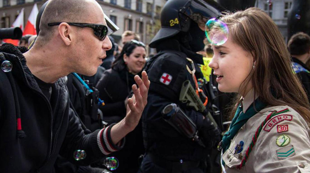 16χρονη προσκοπίνα «αφοπλίζει» με το βλέμμα της το σκληρό πρόσωπο του φασίστα (εικόνες)